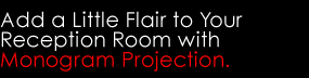 We can create a custom monogram or name/wedding date projection for display on your dance floor or wall in your reception space.